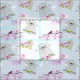 Pretty, romantic birds, flowers and birdcage pattern. Light blue background with subtle white hearts. Larger print version available in my store.