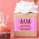 This artwork prominently features a stylised two-tiered birthday cake adorned with lit candles, set against a background of a repeating floral motif. The entire design employs a baby pink colour scheme, creating a soft and delicate aesthetic perfect for any celebration.