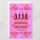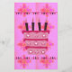 This artwork prominently features a stylised two-tiered birthday cake adorned with lit candles, set against a background of a repeating floral motif. The entire design employs a baby pink colour scheme, creating a soft and delicate aesthetic perfect for any celebration.