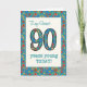 A pretty Age-specific Birthday Card for a Ninety-year-old Friend, with the number 90 and the border filled with a colourful retro floral pattern on a teal background. The floral pattern is part of the Posh & Painterly 'Granny Print' collection, from a hand-painted paper collage by Judy Adamson. This design will fit all Greeting Card sizes.