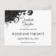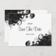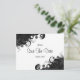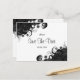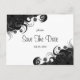 © Sunny Mars Designs - Floral Hibiscus: Black on White Wedding Save The Date Cards - Trendy, stylish, modern, elegant, classy, chic customisable Gothic wedding save the date card with beautiful, gorgeous Goth black swirly floral tropical hibiscus design.