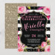 This Floral Black and White Stripe Invitation is completely customisable for any event. This invite is currently set up to be an elegant birthday invitation featuring black and white stripes, pink floral accents and faux gold glitter details. Be sure to select customise further if you wish to use this for another event to access the complete customisable template. This invitation is popular for birthdays, bridal showers, bachelorette parties and so much more!