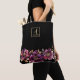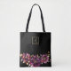 Elegant Purple Golden Floral Black Monogram Tote Bag.