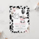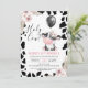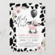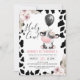Floral Black White Cow Print Balloon 1st Birthday Invitation