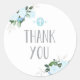 Religious thank you sticker with cross and blue watercolor florals. Perfect as favour labels for baptisms, christenings, communions, and confirmations.