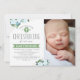Customisable Christening invitation with photo featuring watercolor flowers.