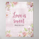 Welcome guests to your wedding with this beautiful floral blooms 'Love is sweet, please take a treat' sign.