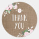 Floral Religious Event Thank You Sticker with faux burlap background.