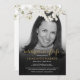 Elegant white blossom floral personalised black and whiite photo celebration of life funeral remembrance invitation. Designed by Thisisnotme©