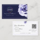 Floral Blue and White Cute Rose with Logo QR Code Business Card