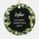 Beautiful floral Christmas ornament with your photo inside a floral berry wreath of sage green greenery, white flowers, and blue berries. Add your baby's name and the year on the back.