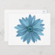 This sweet and simple floral post card features a hand drawn daisy in complementing shades of blue highlighted against a crisp white background.
