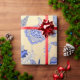 Floral Blue Gold Delicate Oriental Gold Foxier Wrapping Paper