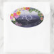 Make a lasting impression with this lovely and elegant monogrammed product label design featuring many different colourful flowers on a blue gradient background with a shimmery frame.