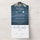 Floral Blue Rustic Wood String Lights Wedding All In One Invitation