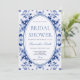 Floral Blue Toile De Jouy Bridal Shower Invitation