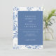 This refined blue and white invitation showcases an elegant toile-inspired floral border and a crisp, minimalist centre for your wedding details. Beautifully balanced typography pairs graceful script with classic serif lettering for a timeless, romantic feel. Fully customisable with your names, wedding date, and location, this design is perfect for announcing your celebration with style. An ideal choice for traditional, garden, or coastal weddings, setting the perfect first impression for your special day.