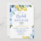 Floral Blue Yellow Lemon Themed Bridal Shower Invitation