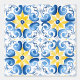 Floral Blue Yellow Mediterranean Tile Design Wallpaper