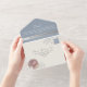 This elegant all-in-one wedding invitation features a delicate blend of blush pink and dusty blue floral accents, creating a romantic and sophisticated design. The soft pastel hues and intricate botanical details provide a charming, nature-inspired look. Perfect for spring or summer weddings, this eco-friendly all-in-one invitation includes space for your wedding details, RSVP, and guest address, making it a convenient and stylish choice for your special day. Personalise the text to match your unique celebration.