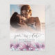 Save our date announcement card with original watercolor artwork. Let your guests know with style, with this elegant and sophisticated design. Original artwork of magnolia flowers and pretty daisies with a subtle gradient overlay. Modern hand written script gives this design a touch of elegance. Easy to customise with your personal details.