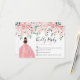 Blush Pink Quinceañera Party RSVP Card: This elegant RSVP card features soft blush pink watercolor roses and lush greenery beautifully arranged along the top of the front. To the left side, a girl in a stunning pink sparkle dress adds a charming and personalised touch.