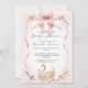 Floral Blush Pink Ribbon Swan Gold Baby Shower Invitation