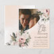 Elevate the charm of your wedding announcement with our exquisite Floral Blush Pink Wedding Photo Save the Date Card. This enchanting design seamlessly blends timeless elegance with modern sophistication, making it the perfect choice for couples seeking a romantic and memorable save the date announcement. Capture and cherish life's moments with our fully customisable invitation. Personalise it by adding your names, wedding date, place. Make it uniquely yours by including a cherished photo of the happy couple, adding a heartfelt touch to your special announcement.