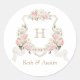Floral Blush Roses Monogram Crest Envelope Classic Round Sticker