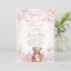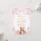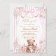 Floral Blush Stripe Pink Bow Bear Baby Shower Invitation