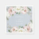 Floral Blush White Greenery Personalised Elegant Wedding Napkins. Floral Pink White Peony Dusty Blue Wedding Napkins