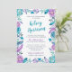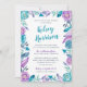 A pretty floral boho baby shower invitation with lovely calligraphy script. This boho chic shower invite features hand painted watercolor illustrations, including blue and purple roses, feathers, arrows, and greenery. The feminine colour palette is perfect for a girl's baby shower or girl's baby sprinkle.