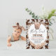 Cute holy cow themed birthday invitation for a little girl in a bohemian style. This holy cow invitation features a highland cow image and a brown cowhide pattern background as well as a boho floral arrangement with pampas grass. The age is editable making this floral boho holy cow birthday invitation suitable for any age.