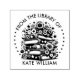 Custom Ex Libris Stamp features a vintage floral book stack silhouette and classic sans-serif fonts. Personalise this beautiful floral from the library of custom rubber stamps with your name.