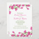 Beautiful pink blossoms grace the upper and lower borders of this white invitation. Perfect for any feminine celebration. <br/><br/>The card is easy to customise with your wording, font, font colour, paper shape options and choice of six paper types.<br/><br/>Not exactly what you're looking for? All our products can be custom designed to meet your needs at no extra charge.<br/><br/>Simply contact us at askpixieprints@aol.com.<br/><br/>Coordinating products available: Just ask us!