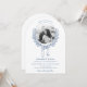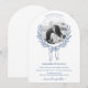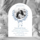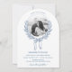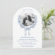 This elegant arched wedding invitation features a stunning hand-drawn circular floral frame, delicately crafted with intricate details. A charming bow adorns the bottom centre of the frame, adding a touch of romance. The couple’s photo is beautifully placed at the heart of the design, creating a personal and intimate touch. The invitation is elegantly finished with sophisticated blue script, exuding timeless charm and grace. Perfect for a refined and romantic celebration. Please get in touch with us for design assistance via Zazzle Chat. We will be sure to respond within 12 hours.