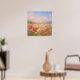 Artwork of a wind swept field of flowers in a pastel painting style. This artwork captures the essence of a warm summer breeze through a vibrant meadow of red poppies and wild daisies, carrying delicate petals up into the sky. The soft, painterly texture and warm, golden light evoke a sense of peacefulness. It is the perfect piece to brighten up a living room or any space that could use a touch of nature's beauty. The composition is grounded by a dense, textured foreground of brilliant red poppies and white daisies, guiding the viewer’s eye upward as scattered petals dissolve into a soft, sky of peach, lavender, and pale blue. The contrast between the highly detailed, saturated flowers in the foreground and the hazy, dreamlike distant hills creates a sense of depth and vitality.