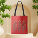 Floral bright red tote bag