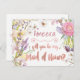 Deliciously romantic and feminine floral frame for this important question : "will you be my maid of honour?" Rose gold calligraphy brush and watercolor flowers decorate this lovely postcard. The reverse has special calligraphy address area.