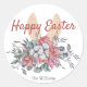 Adorable watercolor bunny ear with flowers and eggs Easter round stickers. Personalise text font style and size.