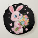 "Floral Bunny Joy – Adorable Decorative Round Cushion