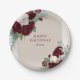 Floral Burgundy and Ivory Roses Personalised Paper Plate