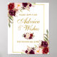 Floral Burgundy Gold Wedding Advice and Wishes Poster