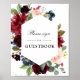 A floral design with a modern floral frame and burgundy & navy watercolor flowers. The text and colors on this sign poster can be edited.