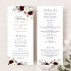 Floral Burgundy White Greenery Wedding Program. Floral White Merlot Gold Leaves Wedding Order of Service