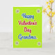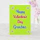 This Valentine's Day card shows the words “Happy Valentine’s Day Grandma” centered on a bright lime green background. “Happy Valentine’s Day” is written in rounded red letters with a white outline, making it stand out right away. Just below, “Grandma” appears in deep royal blue with the same white outline, so the message feels clear and easy to read. In each corner, there’s a simple starburst shape with a small orange-red dot in the middle and thin dark lines reaching outward. The corner details are small but add a sweet frame around the message without taking attention away from it. The strong mix of green, red, and blue gives the card an upbeat, affectionate feel that suits a grandma you love. It’s a meaningful way to say you’re thinking of her and that she matters to you 🥰❤️. Hope it helps you share your Valentine’s Day sentiments.