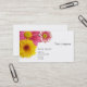 A floral theme for a business card. You can enter text in the existing fields, but they can be modified (edited, added or deleted) using the Customise option. Choices of card size and paper type.