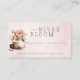This dreamy business card design blends feminine charm with rich café culture, perfect for boutique bakeries, patisseries or elegant coffee shops. At the heart of the composition is a creamy latte nestled in a blush-toned cup, topped with a delicate dusting of cocoa. The scene is adorned with lush, romantic florals—soft peonies and garden roses in warm blush hues—blooming gracefully from behind the cup, evoking both fragrance and freshness.