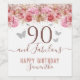 Floral Butterflies Pink Happy 90th Birthday Wine Label