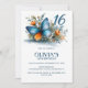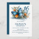 Floral Butterfly Blue Orange 16th Birthday Party Invitation